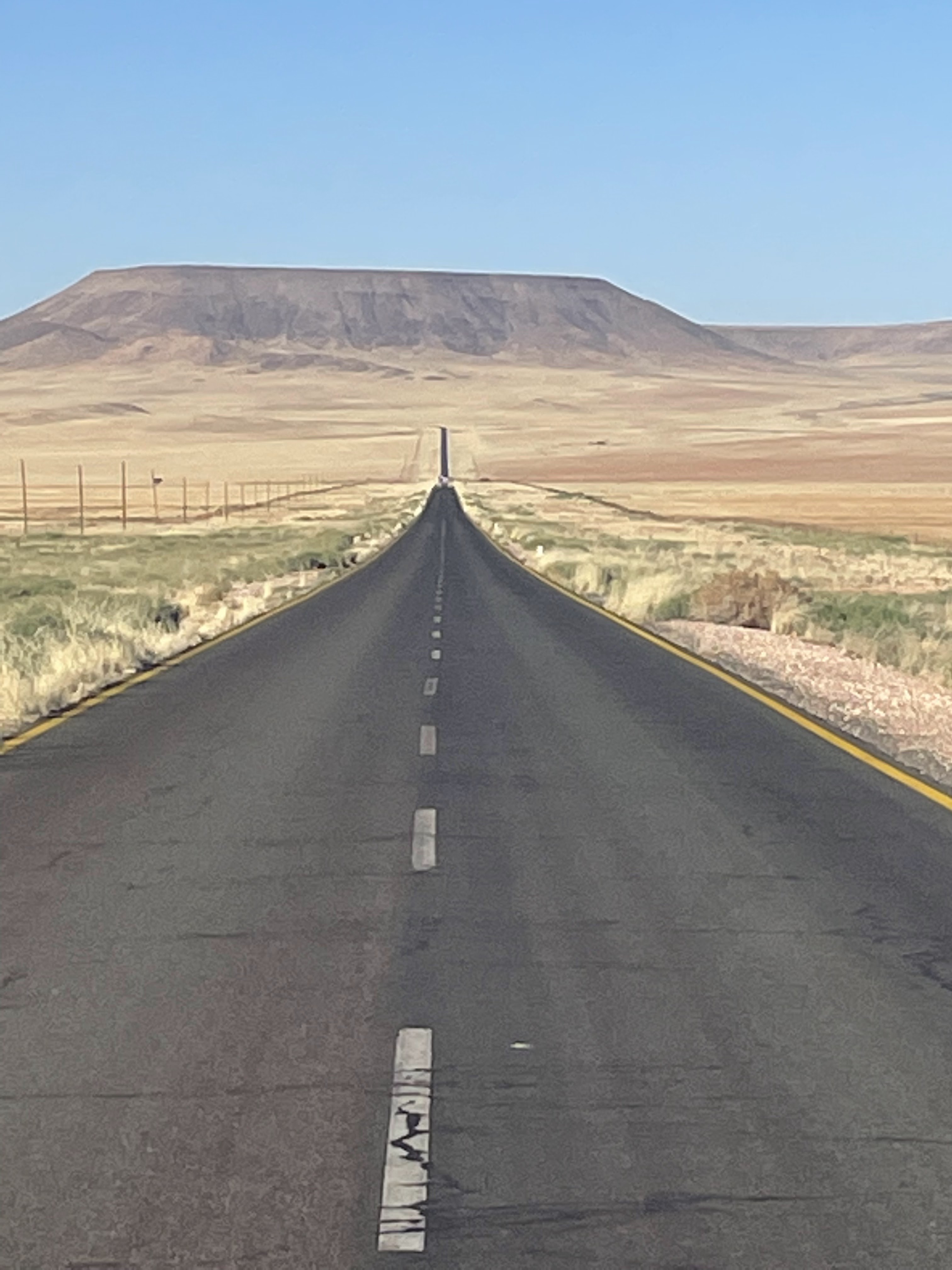 The following day, we drove further south toward the Fish River Canyon, the second deepest canyon in the world and the southernmost national park in Namibia. You can almost see South Africa in the distance. We got a late start that morning because we were on the phone with the airport’s baggage service. My luggage had been found and was on its way to Cape Town, but Marie-Laure’s was still missing, and we had to file a claim with a detailed description of the backpack’s contents to Lufthansa. It wasn’t a fun task, but it had to be done.