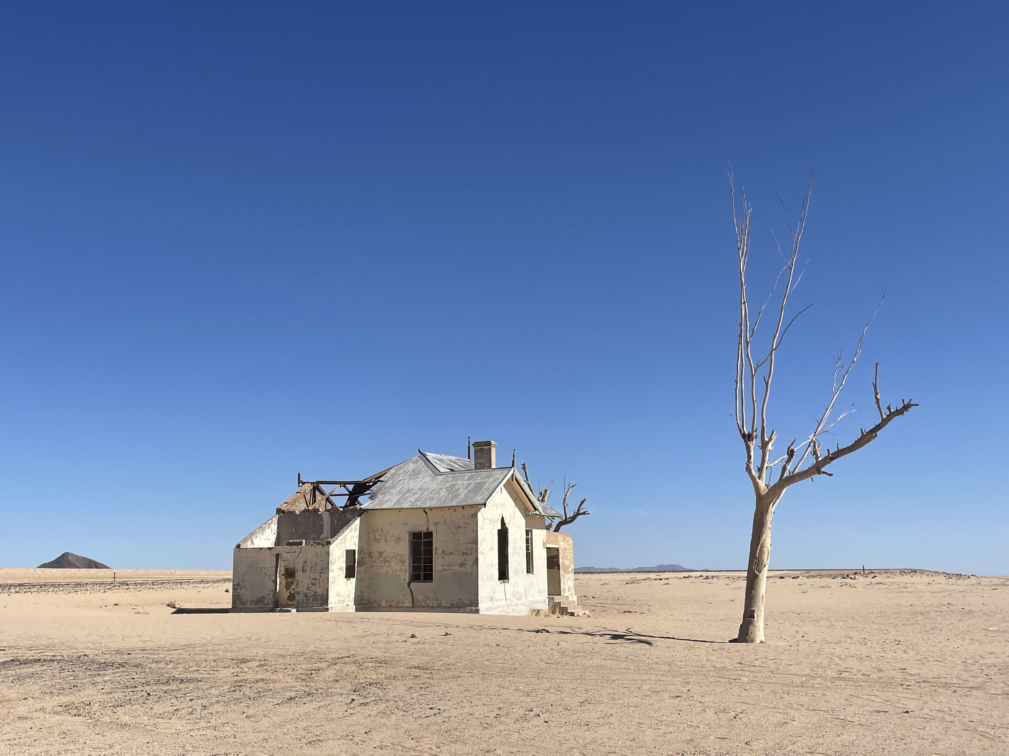 Further west, we arrived in Aus. From there, a straight road cuts across the Naukluft-Namib desert, the oldest desert in the world, all the way to the South Atlantic Ocean. The road ends in the coastal town of Luderitz, where you can see influences from German, Portuguese, and even Dutch settlers (as early as the 18th century, pioneers from the Cape of Good Hope ventured into this region). Not far from Luderitz, we passed the ghost town of Kolmanskop. Diamond and uranium mines have been, and still are, the most important economic drivers in Namibia. Kolmanskop was once a bustling diamond mining town, where precious stones were traded everywhere. But as the diamond reserves dwindled, all that was left was a deserted, ghostly town in the middle of the desert. Collapsed houses, unused railway lines—remnants of a once-thriving hub now overtaken by sand and silence.